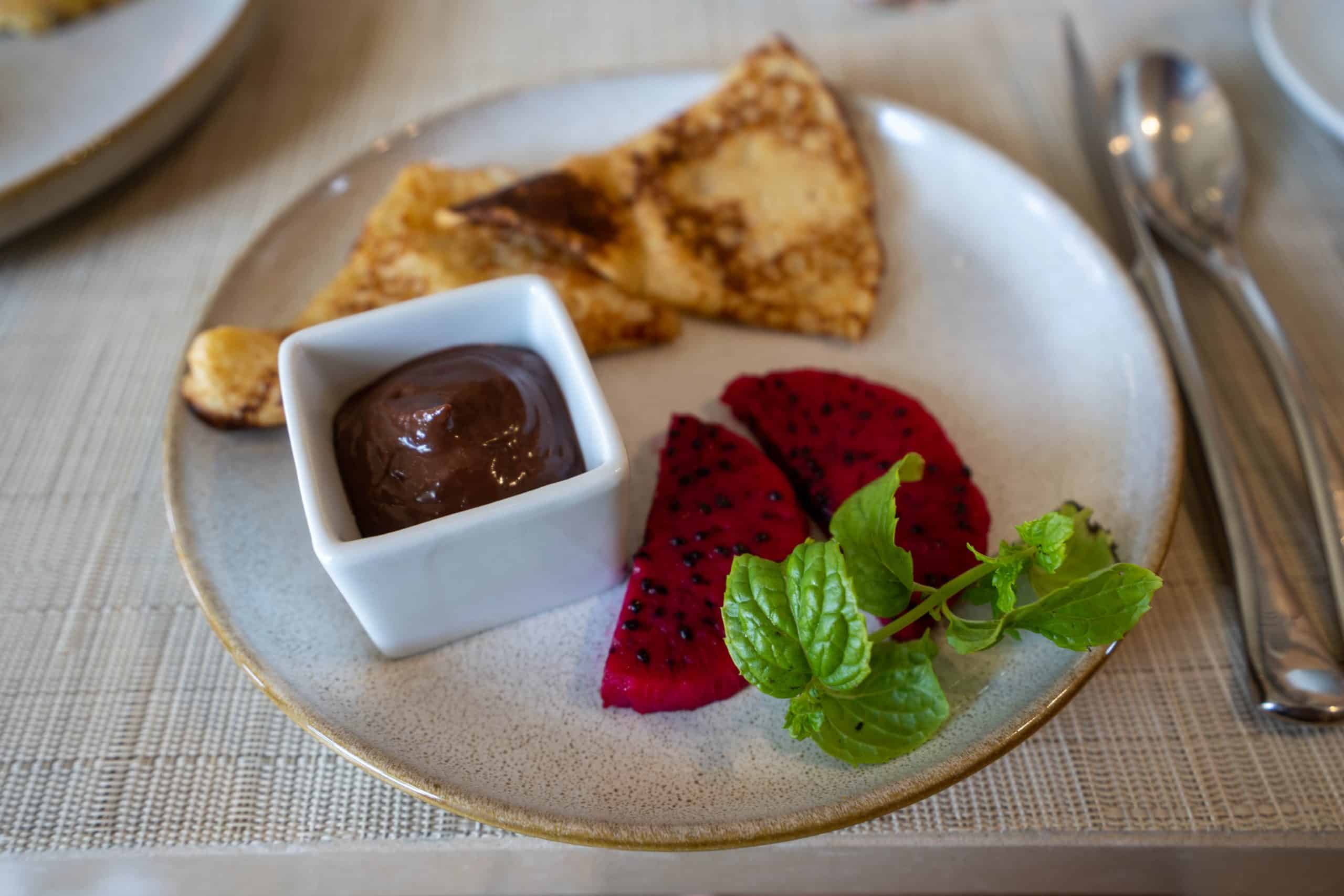 The Brando has four dining establishments plus one bar: the Beachcomber Café, Bob’s Bar, Nami, Les Mutinés, and Te Manu Bar. The Beachcomber Café is the resort’s all-day dining restaurant, offering breakfast, lunch, and dinner in a laid-back beachside ambiance, complete with outdoor seating and a picturesque lagoon view. The all-day-dining menu offers a blend of Polynesian, French, and international cuisines, with stand-out seafood dishes such as lagoon fish ceviche, Tahitian raw fish, swordfish carpaccio, rock octopus with pan-fried pineapples, and lobster rolls.