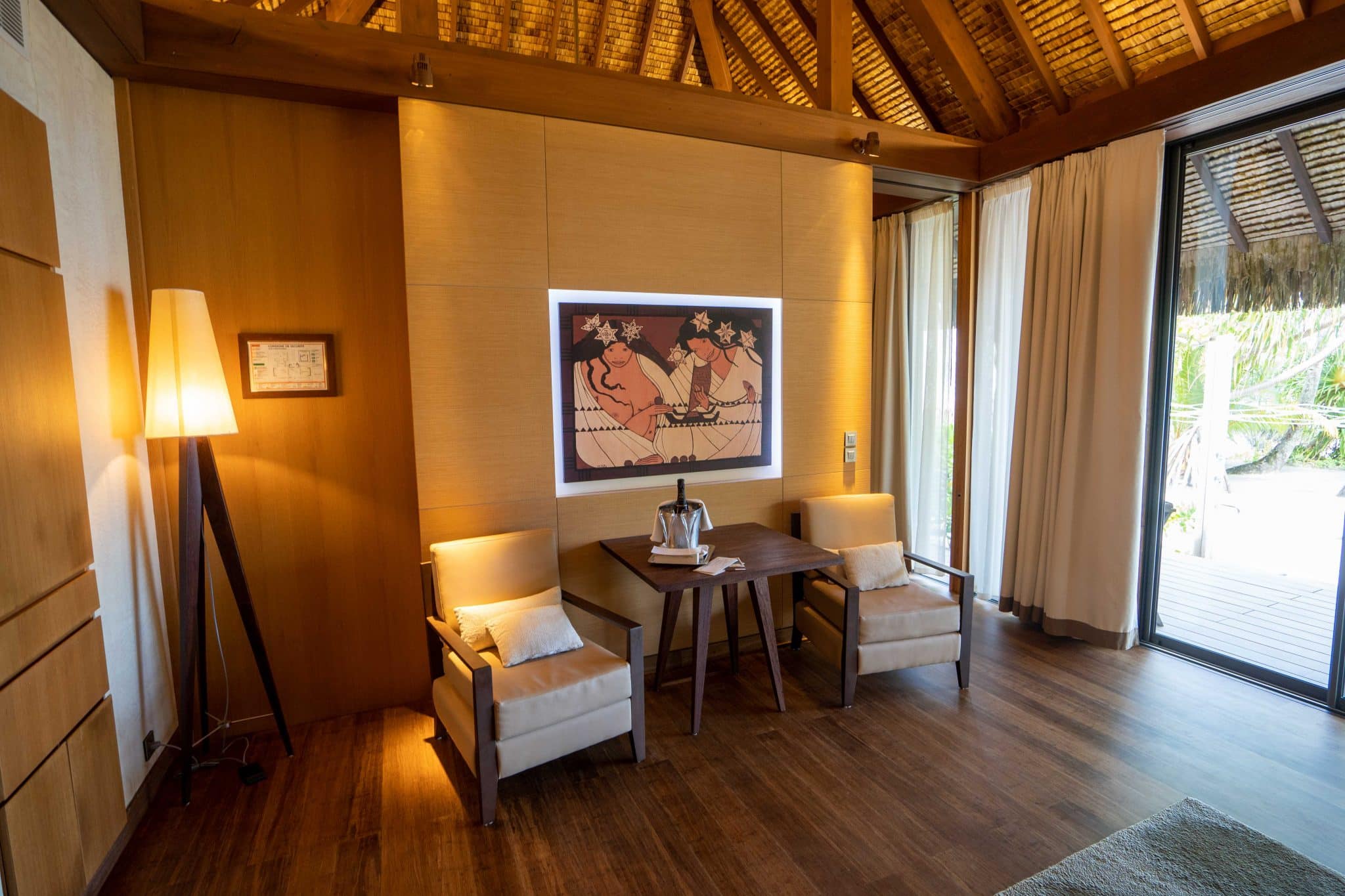 A welcoming bottle of Champagne awaits you at the table, a sparkling prelude to the unlimited beverages available as part of the all-inclusive package. The villas feature king beds, plush furnishings, a wall-mounted flat-screen TV, a walk-through closet, an elegant bathroom complete with a rain shower, and a mini-bar.